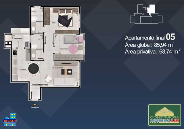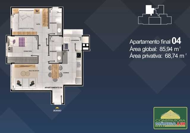 -   Apto. final 04 e 05 Área Privativa / Construída   68,74 m²