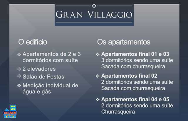 O GRAN VILLAGGIO é um empreendimento da Mânica JJR, em Não-Me-Toque/RS.