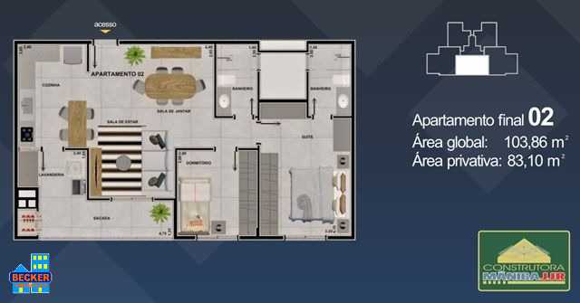 -   Apto. final 02 com Área Privativa / Construída   83,10 m²